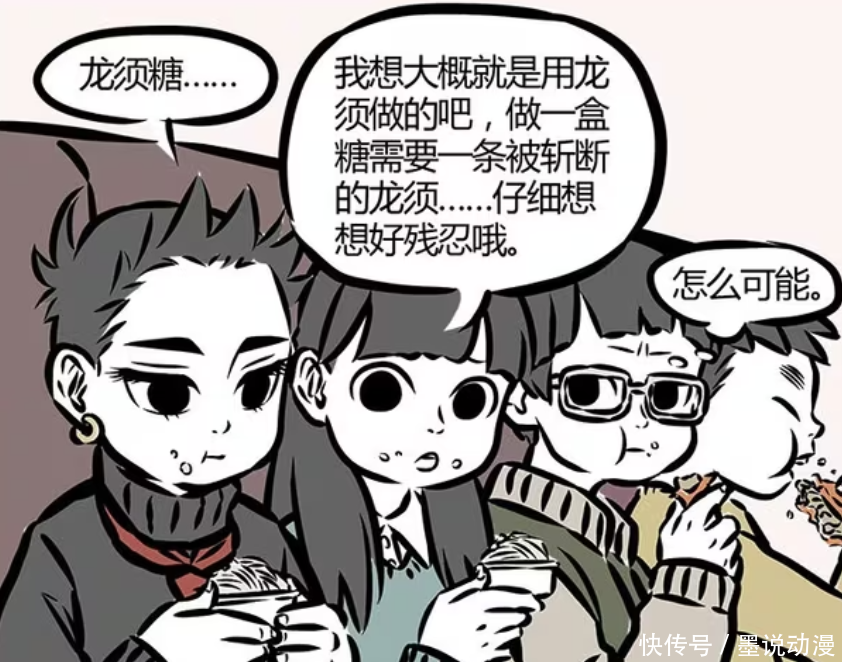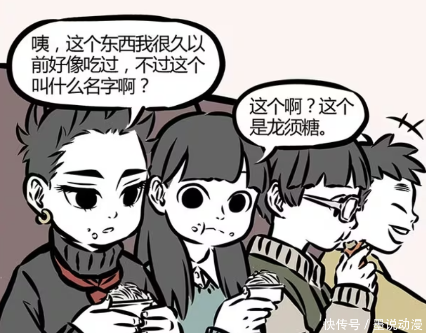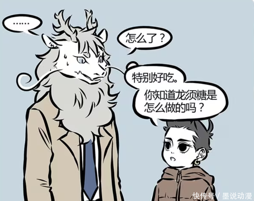 《非东谈主哉》漫画版中,徐小宝请哪吒、班长和刘畅吃龙须糖。哪吒以为这种滋味有点熟谙,只不外哪吒记不起来名字。徐小宝不仅告诉哪吒名字,还以为龙须糖是用龙须作念成的。哪吒信以为真,见到敖烈之后还思剪掉他的龙须来作念糖。